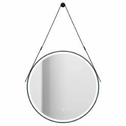 Colore Round Matt Black 600mm LED Illuminated Bathroom Mirror With Demister And Touch Sensor