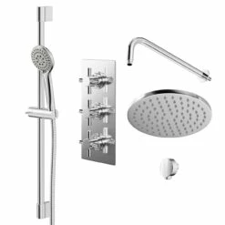 Our Cross Polished Chrome Triple Thermostatic Valve Mixer Shower with Round Fixed Head and Avon Shower Slide Rail Kit is the perfect shower solution to complement your new bathroom suite.
