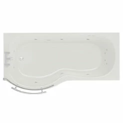 Our Plage 1700mm 12 Jet Chrome Flat Jet Left Hand P Shaped Whirlpool Shower Bath with Towel Rail Bath Screen and Front Bath Panel offers a complete bathing solution for your lovely new bathroom. This bathroom must-have includes a luxury shower bath, front bath panel, shower screen and legs to provide a practical and functional addition that will update any bathroom setting.