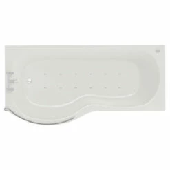 Our Plage 1700mm 12 Jet Easifit Left Hand P Shaped Spa Shower Bath with Bath Screen and Front Bath Panel is the ultimate addition to your new bathroom.