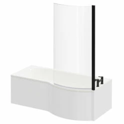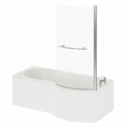 Plage Polished Chrome 720mm Single Section Curved P Shaped Bath Shower Screen With Towel Rail